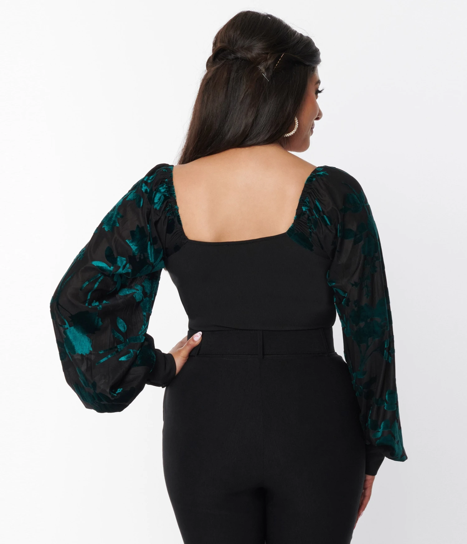 Be the first to review “Unique Vintage Teal & Black Floral Velvet Burnout Bodysuit” Cancel reply
