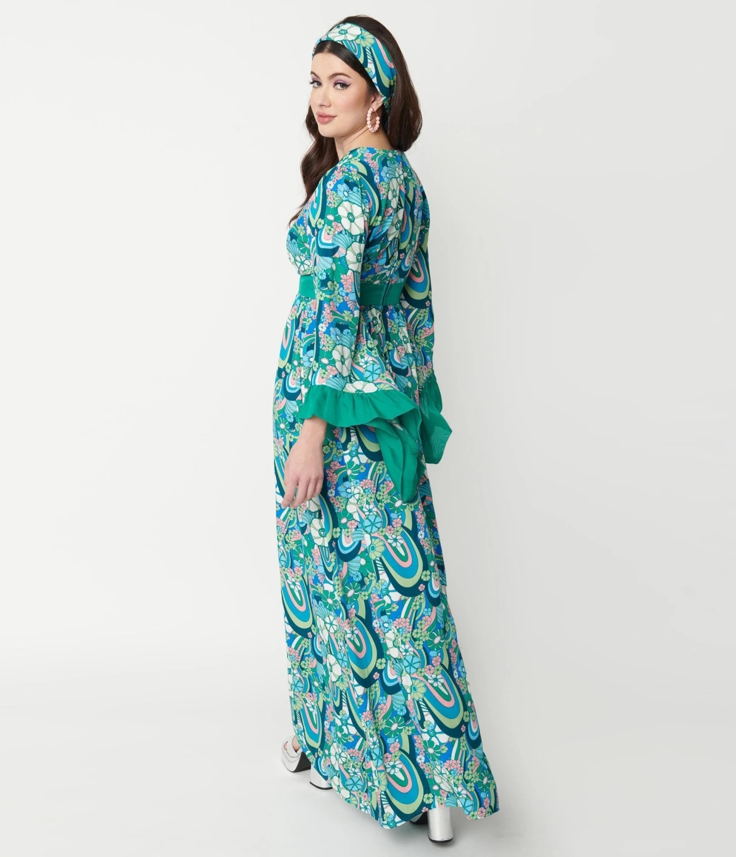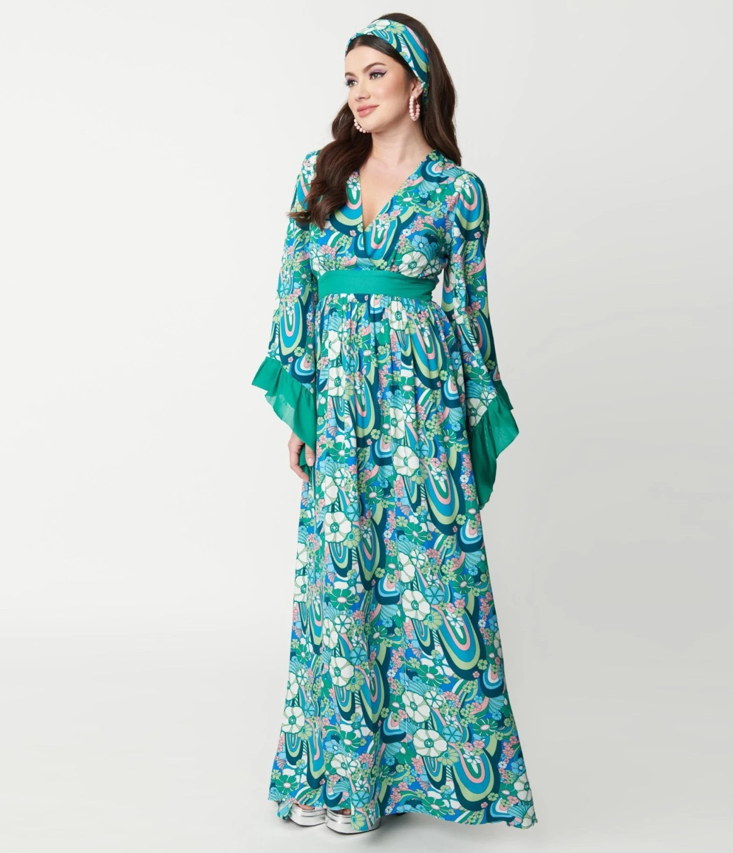Be the first to review “Unique Vintage Teal & Blue Psychedelic Floral Print Maxi Dress” Cancel reply