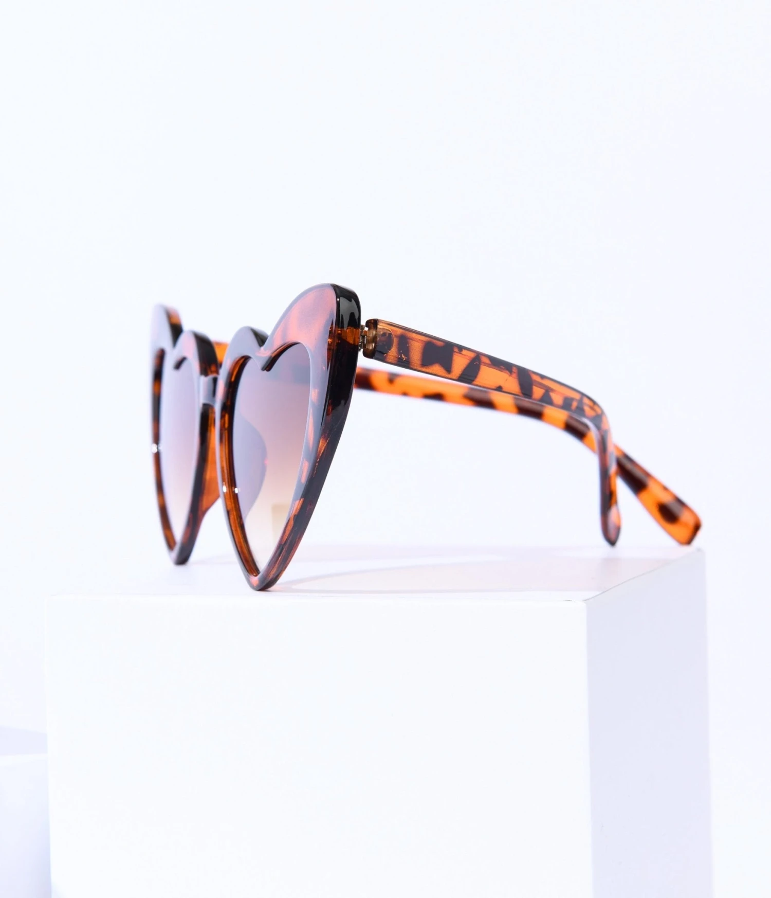 These stylish retro sunglasses from Unique Vintage are crafted in a lovely tortoise shell heart shaped frames with a subtle cat eye for that extra oomf. The tinted lenses offer UV 400 protection!