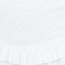 This adorable swim top is cast in solid white, while the adjustable straps dance with sweet ruffles. Complete with a faux buckle accent, hook back, and removable padding.