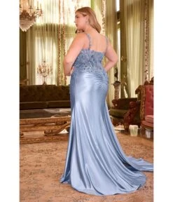 Cinderella Divine Plus Size Desert Rose Off The Shoulder Tie Prom Gown