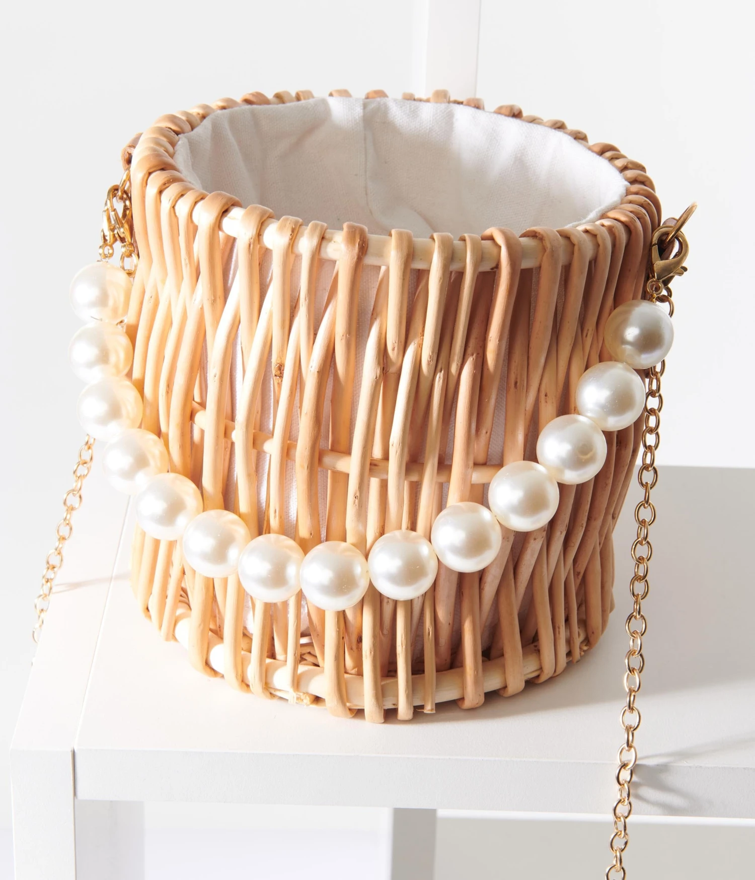 Be the first to review “White Pearl & Rattan Basket Handbag” Cancel reply